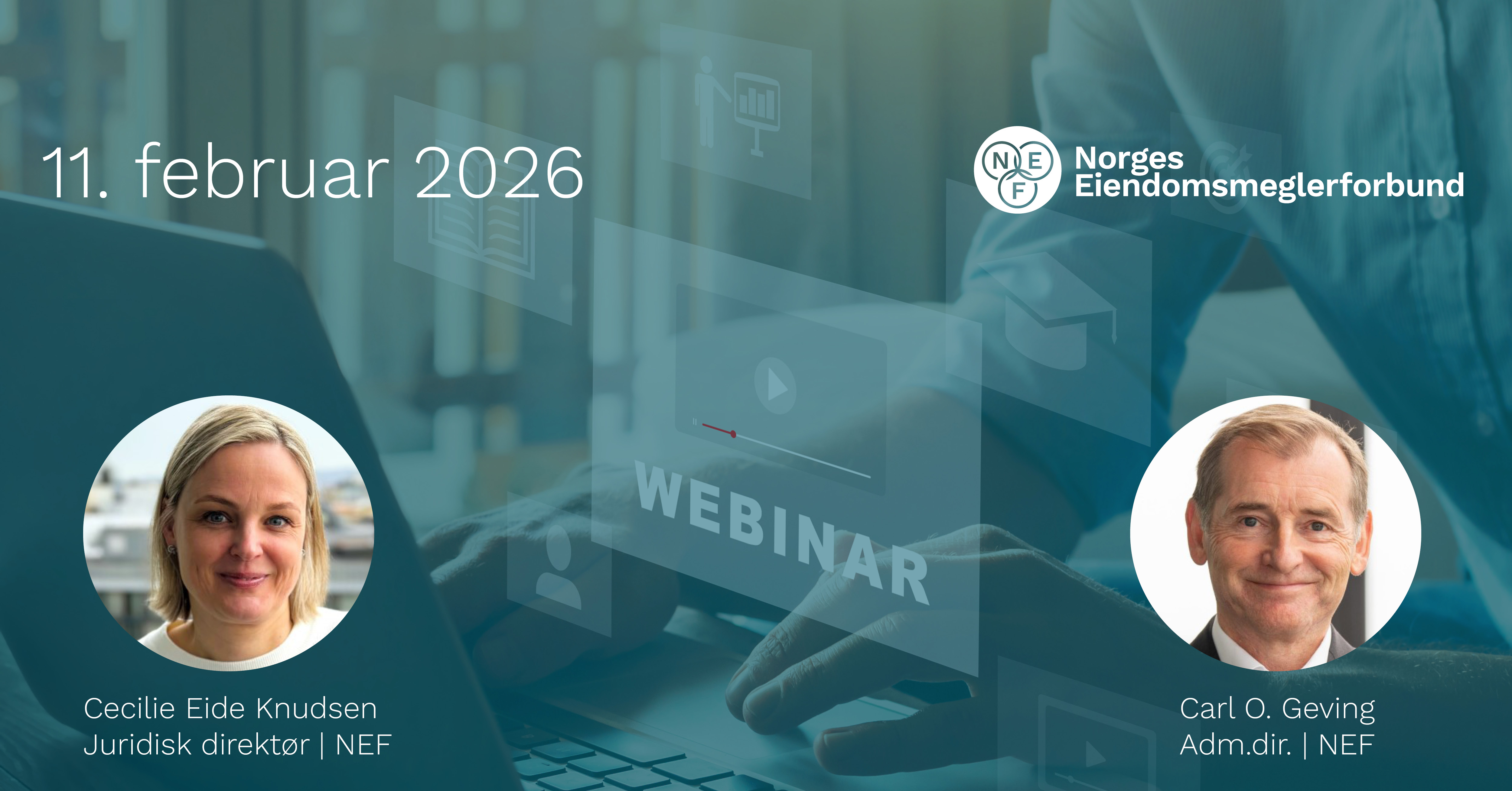 Norges Eiendomsmeglerforbund inviterer til NEF 2-timers digitalt frokostseminar tirsdag 14. desember 2021!