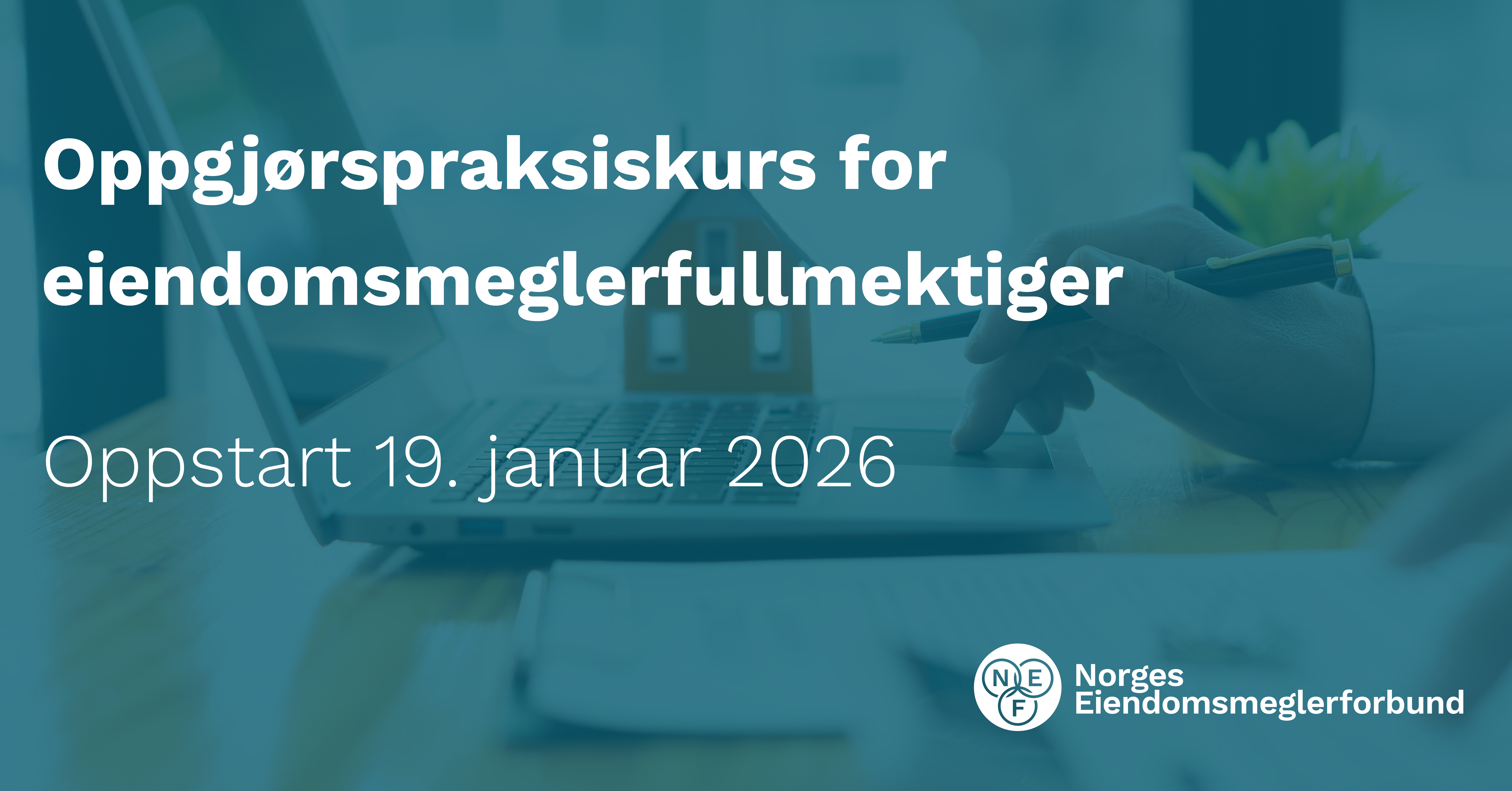 Norges Eiendomsmeglerforbund inviterer til oppgjørspraksiskurs for eiendomsmeglerfullmektiger med oppstart mandag 13. desember 2021!